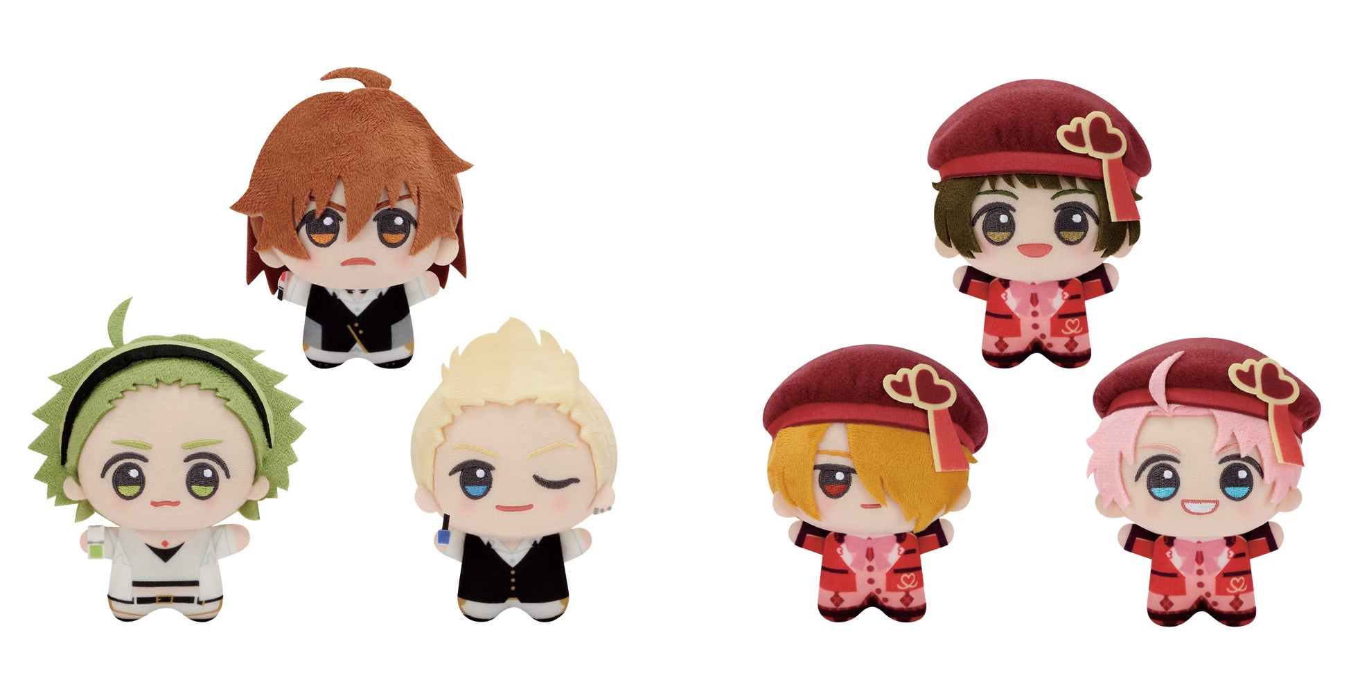 「BRIGHTEST AWAKING」衣装の「Jupiter」(御手洗翔太、天ヶ瀬冬馬、伊集院北斗)と「Bitter Sweetアドレセンス」衣装の「F-LAGS」(兜 大吾、秋月 諒、九十九一希)のちびぐるみ。