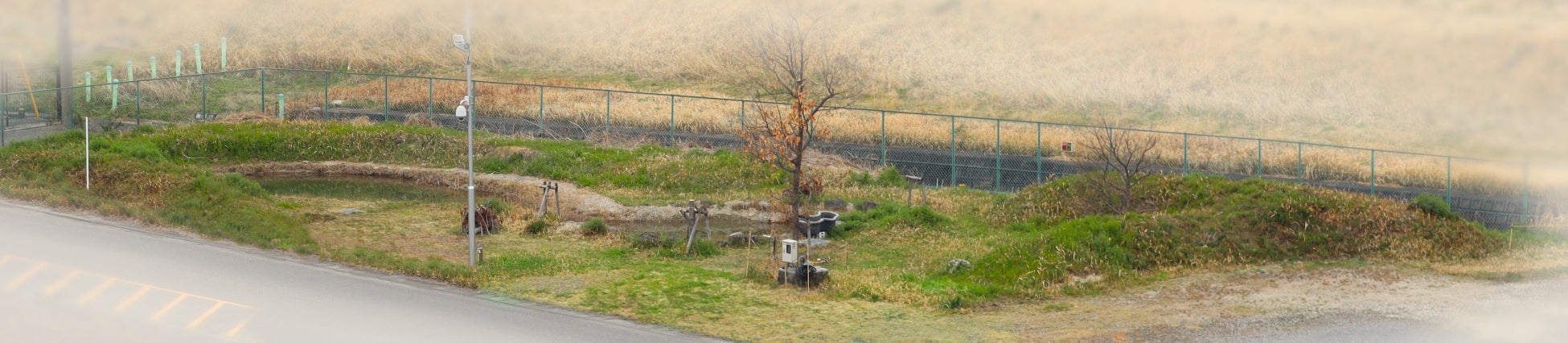 井戸水・雨水による水位管理や水質管理(pH管理)とともに、低草丈の在来植物群落を維持する草地管理を行っています。水辺環境の創出やヒメガマの刈り取りによる水質改善を図り、トンボ類・カエル類などの成長段階に応じた環境を整備するほか、石積みや除草しない区画の設定によって昆虫類の生息場所(ハビタット)を確保しています。また、ビオトープの拡張によるアカギツネやタヌキなど希少な哺乳類の来訪も確認されています。水生・陸生生物の出現種を定期的に記録し、生息環境を改善しています。