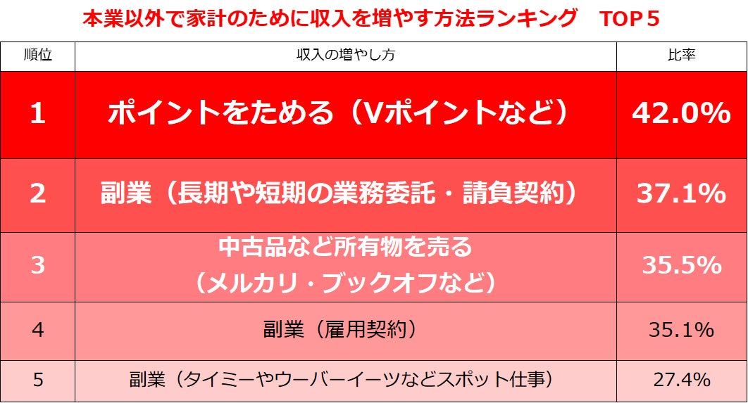 5.収入増やすなら「ポイントためる」42.0%、「副業(委託・請負)」37.1%