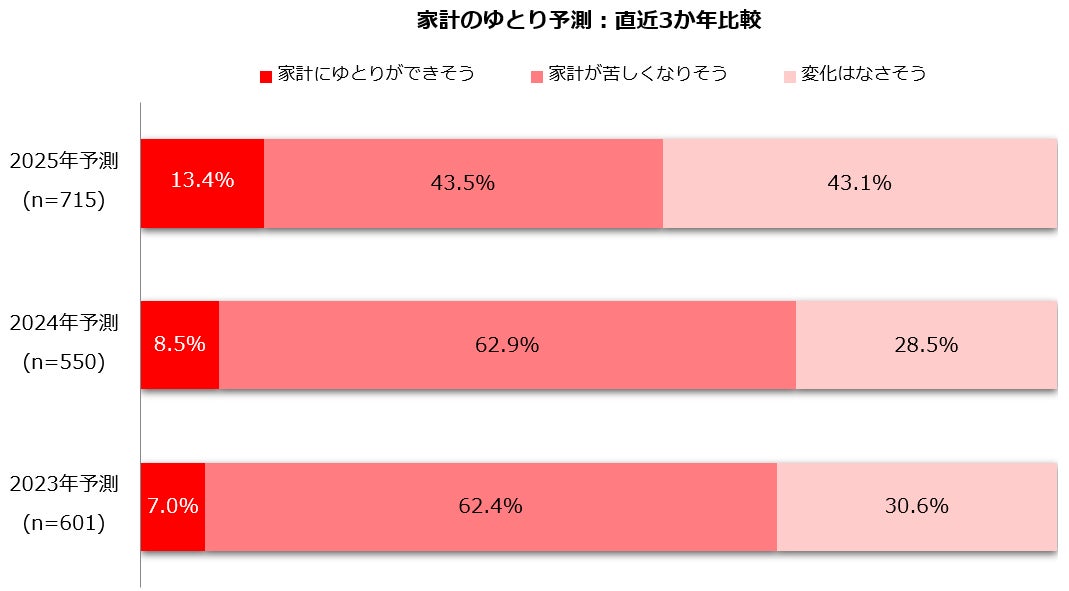 2.2025年の家計「ゆとりができそう」13.4%、「苦しくなりそう」43.5%