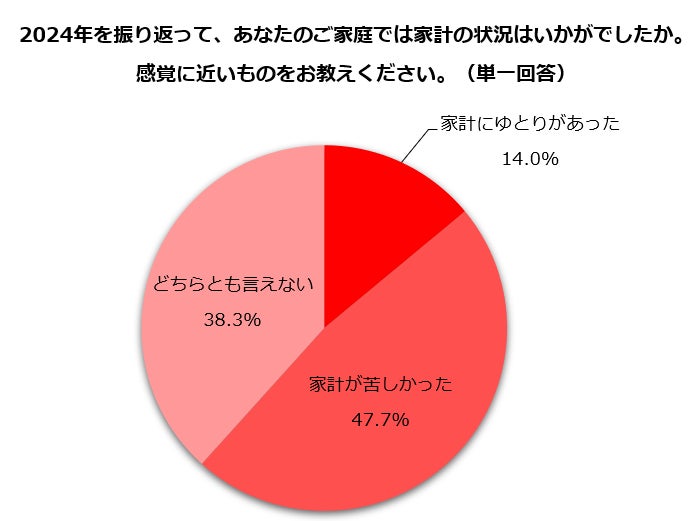 1.2024年の家計「ゆとりがあった」14.0%、「苦しかった」47.7%