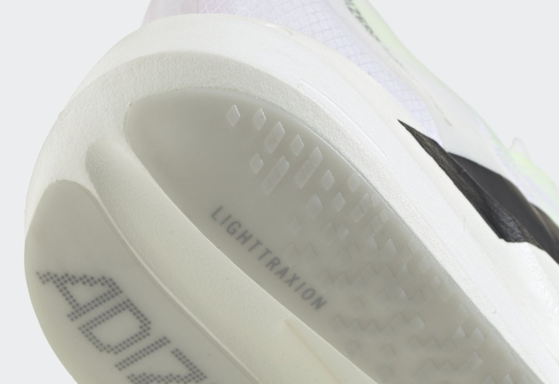 「ADIZERO ADIOS PRO EVO 1」から発想を得て開発された、前足部ロッカーポイント構造を採用。シューズレングス(長さ)の60%に当たる箇所にロッカーポイント(前足部もしくはつま先の下でソールが上向きにカーブするポイント)を設置。前方推進力を生みだし、ランニングエコノミーを向上させることがラボにて証明されています。低密度高反発素材「LIGHTSTRIKE PRO」が軽量性と高いクッション性を担保。軽やかで柔らかい着地をランナーに提供。