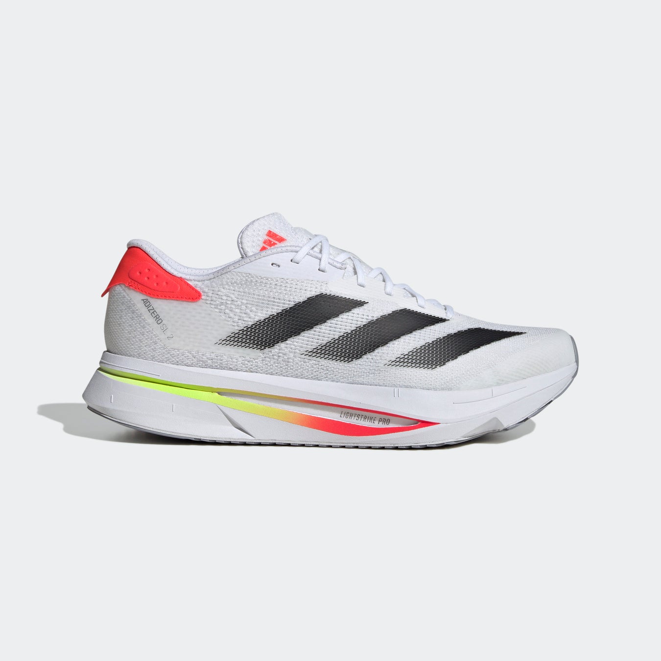 エネルギーロスを抑えてハーフマラソンやフルマラソンで別次元の速さを引き出すレーシングシューズ。5本骨状フルレングスカーボンバー「ENERGY RODS 2.0(エナジーロッド 2.0)」と低密度高反発素材「LIGHTSTRIKE PRO(ライクストライク プロ)」を搭載したミッドソールには、前足部ロッカーポイントを備えたジオメトリを新たに採用。この構造が、前方への推進力を生みだし、ランニングエコノミーを向上させる。アディダスが誇る高度なテクノロジーと先端的なデザインで、別次元の速さを求めるランナーをサポートする一足。
