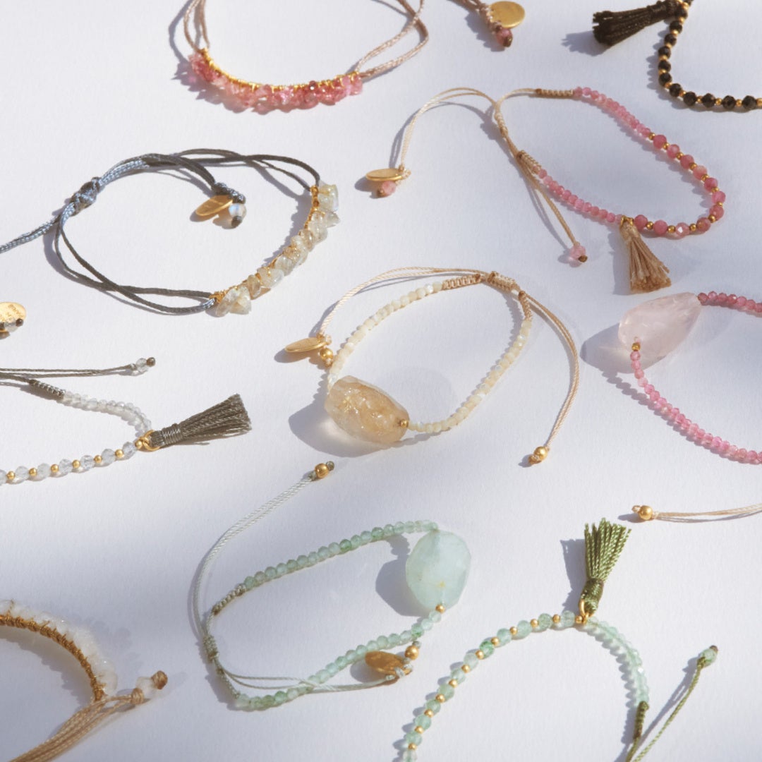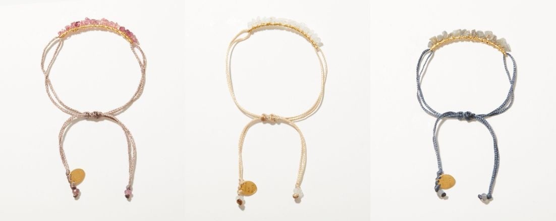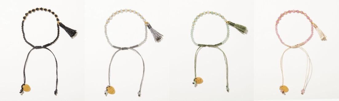 この度新たなコラボレーションが実現しました。ラフカットの大ぶりな天然石やMAISON N.H PARISのアイコンでもあるタッセルを添えたデザインなど、インドで女性が制作したブレスレットを3型展開いたします。