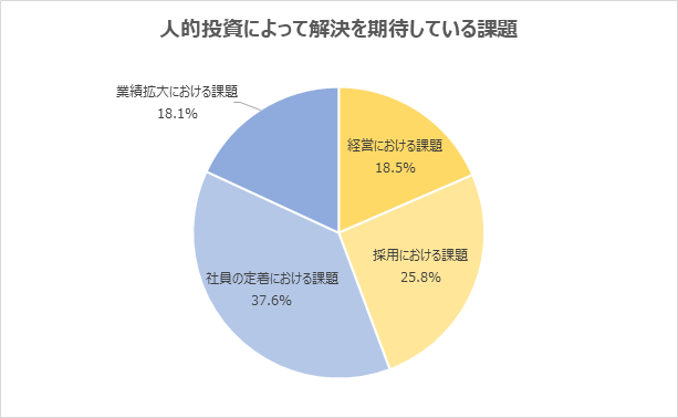 (2)人的投資によって解決を期待している課題は「社員の定着における課題」が最多