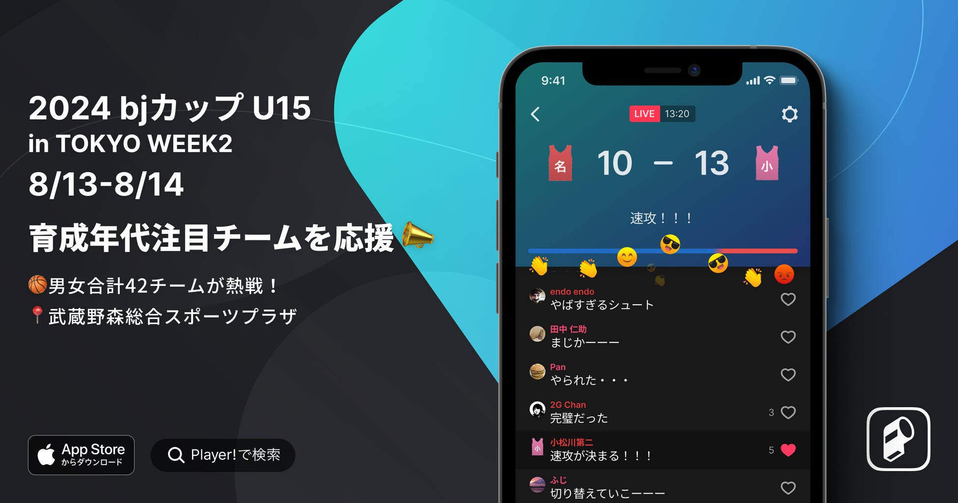 スポーツスタートアップ企業 ookami は、スポーツエンターテイメントアプリ「Player!」において、8月13日(火)より開催の2024 bjカップ U15 in TOKYO WEEK2 において日程表やトーナメント、リーグ戦などのPlayer!独自のウィジェットを活用したデジタル連携を行います。