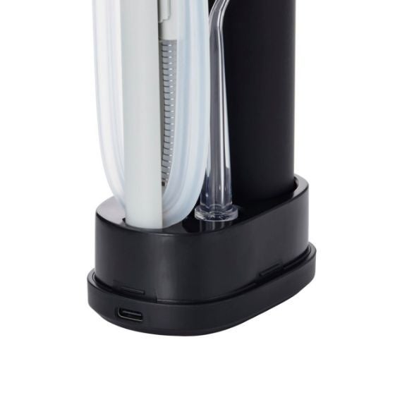置くだけで手軽に充電できるワイヤレス充電スタンド付きで、専用充電スタンドにすべてのパーツを収納することができます。洗面台の周りをスッキリ使えて持ち運びにも便利です。