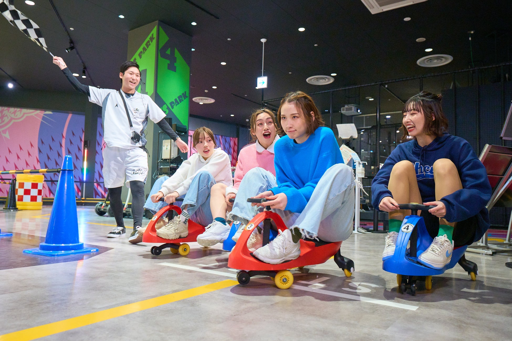 体を動かしながらまるでバラエティ番組に参加しているような体験ができる新感覚のバラエティスポーツ施設です。学生グループやファミリーのお客さまから、「全力ではしゃげる施設」と多くの支持を得ています。