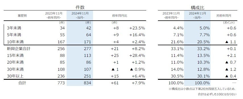業歴別『新興企業』は277件 構成比33.2%は過去3番目の高水準