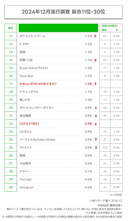 【LINEリサーチ】若年層の流行に関する定点調査(2024年12月)