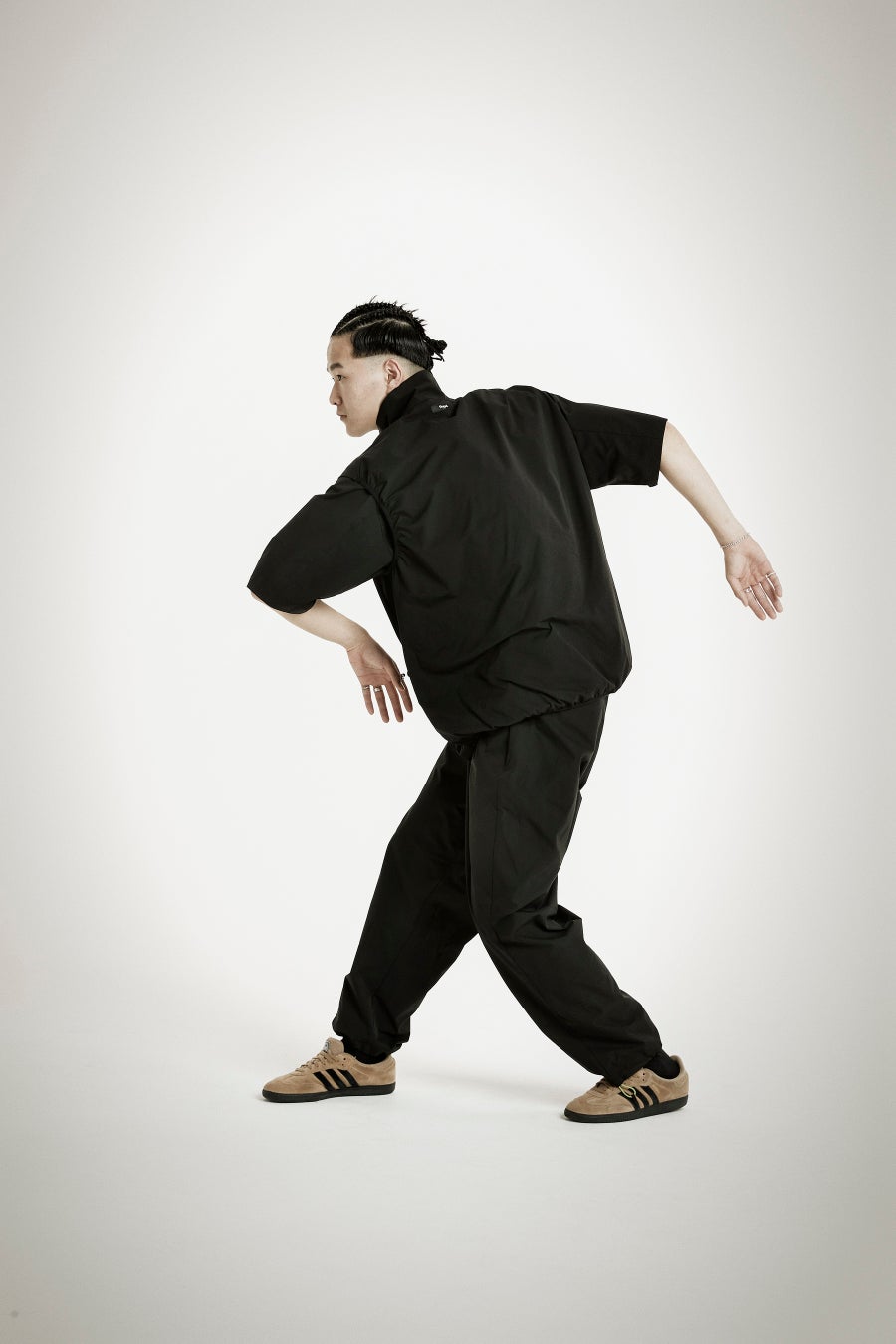 「今までにはなかったブレイクダンス用のウェアを作ろう」ということで、現役のブレイクダンサー達と幾度のテストを繰り返しながら、激しい動きに干渉しないよう、アクロバティックな動きを加味したパターンをデザインに落とし込んでおります。