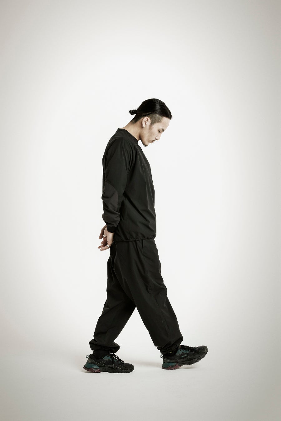 激しい動きにより体が床に接触する部分をケアするため、CORDURAファブリックを用いた肘当てやストッパーをシリコン仕様に変更。各アイテムの随所にこだわりが散りばめられ、リラクシーシルエットなアイテムを製作しております。