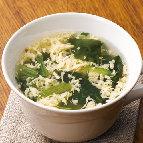 熱湯を注ぐだけで、いつでも手軽に味わえる卵スープです。会田養鶏の卵をはじめ、わかめやごま、ほうれん草などの厳選国産素材を加えてマイルドに味つけ。ご年配の方から小さなお子さんまで、どなたにもおいしく召しあがっていただけるスープに仕上げました。ふわふわの卵がたっぷり入ったやさしい味は、朝食やランチのお供に、ちょっと小腹がすいたときやお夜食にと、毎日の食卓で出番の多いおいしさです。