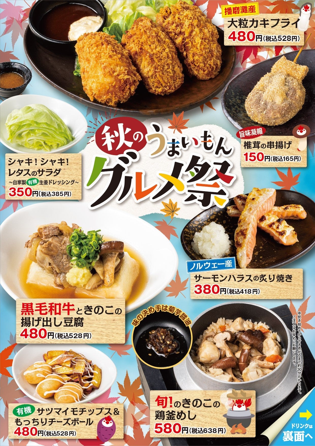 【三代目 鳥メロ】季節の食材を愉しみ一足先に秋を感じる「秋のうまいもん “グルメ祭”」開催!