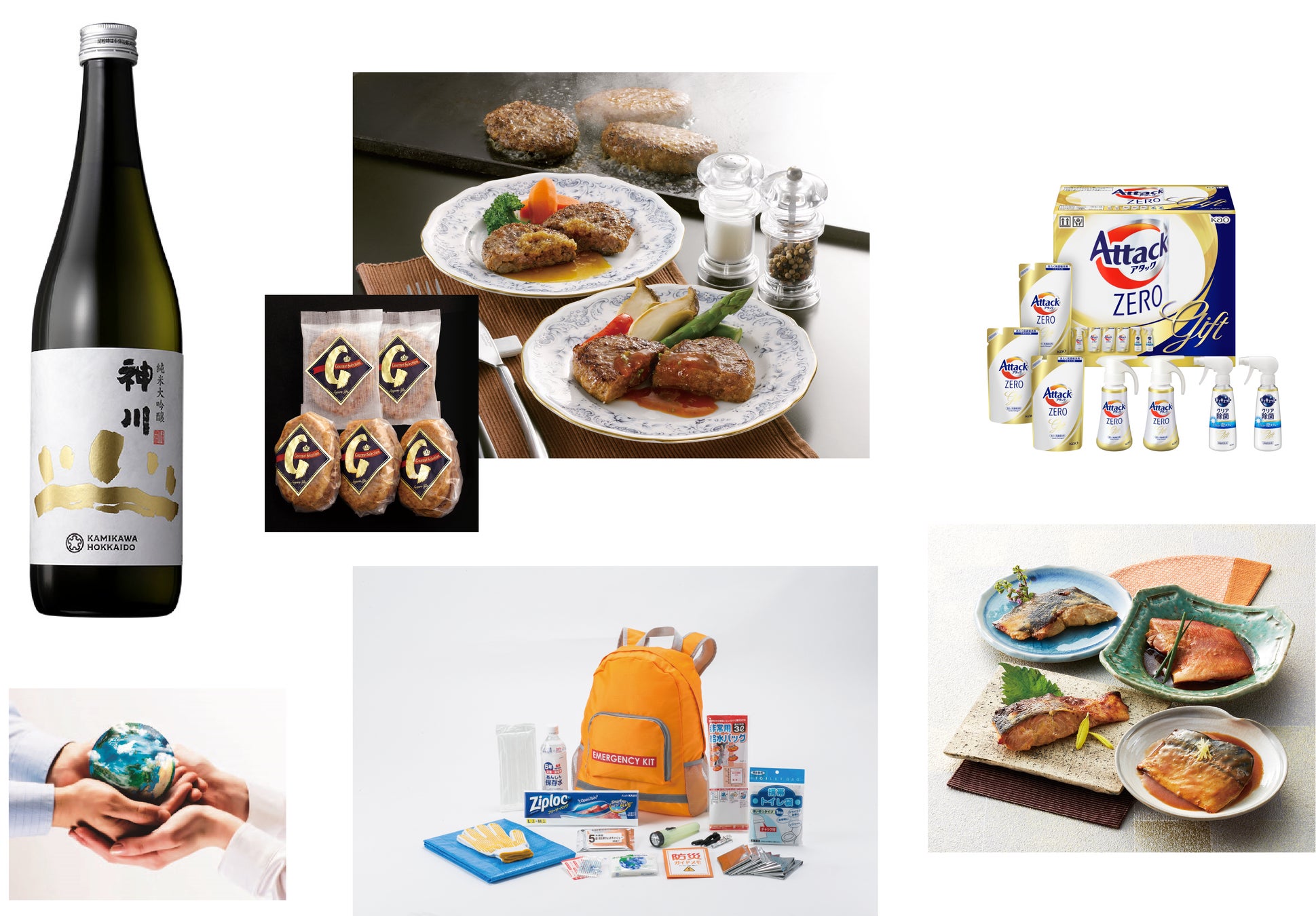 包括連携協定を締結している北海道上川町の地元限定酒や食品、洗剤などのギフトセットを想定しております。各種内容は5月中に発送される「選べるギフトのご案内」をご確認ください。