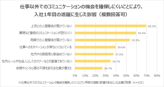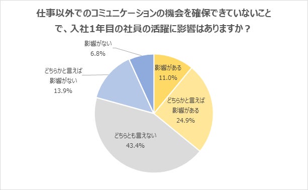 3社に1社が、仕事以外でのコミュニケーションが減り、入社1年目の社員の活躍に「影響がある」と回答。「テレワークでは、移動時間などのカジュアルな会話も減っている」の声/人事担当者アンケート
