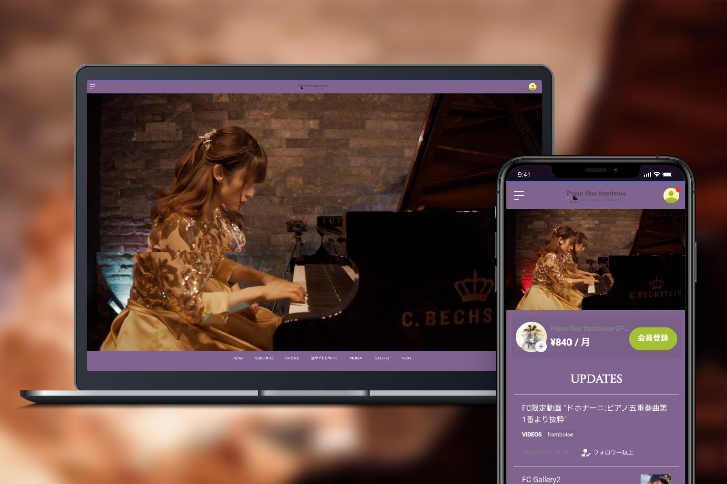 この度オープンしたのは、Piano Duo framboiseのオフィシャルファンクラブです。当サイトの有料会員に登録いただくと、会員限定のブログや画像、動画など、スペシャルな特典をお楽しみいただけます。