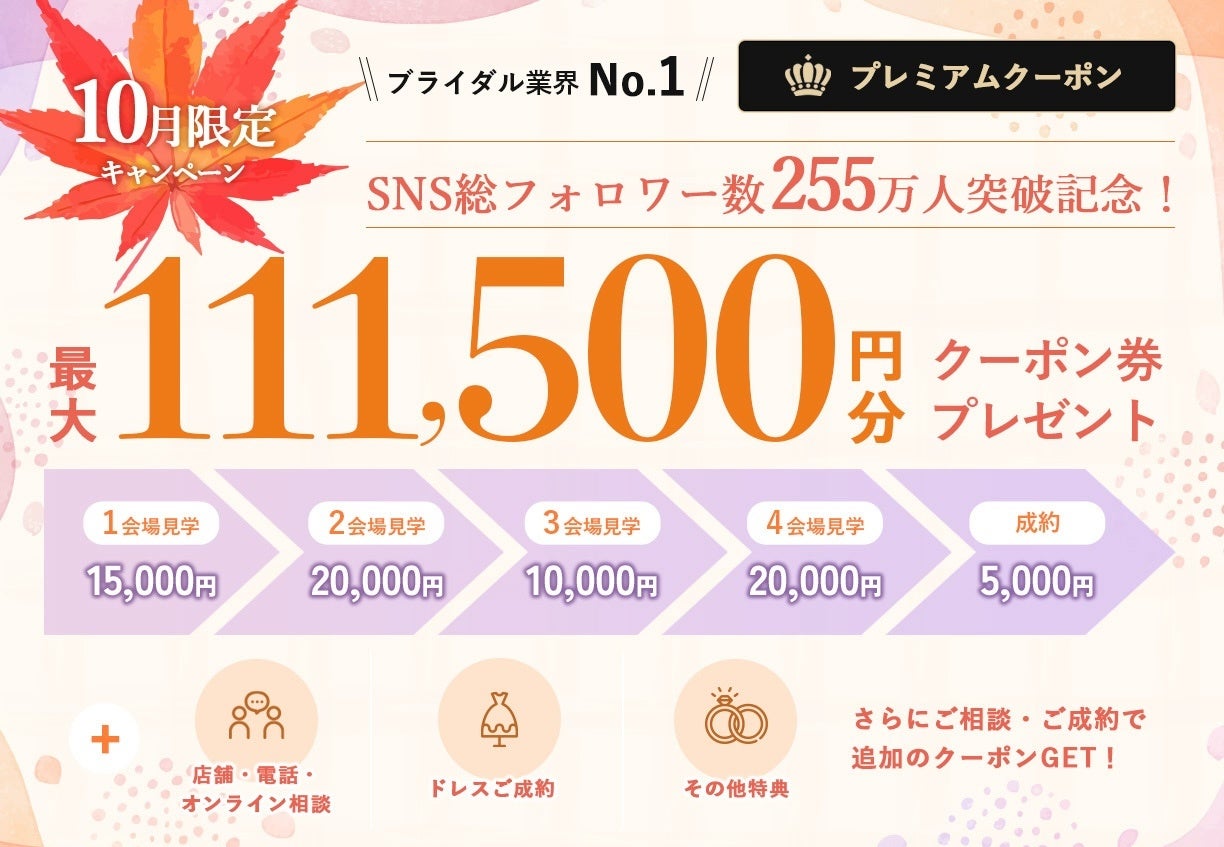 特典②【条件を満たせば全員!】増額!最大111,500円分クーポンプレゼント!
