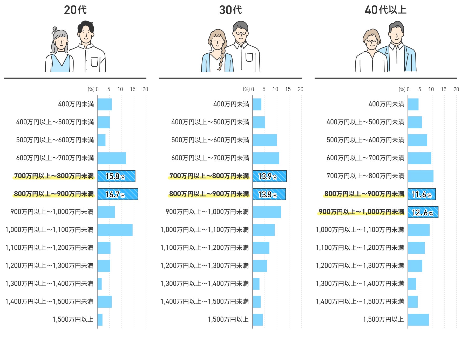 共働き夫婦の世帯年収は、800~900万円未満が11.0%で最多