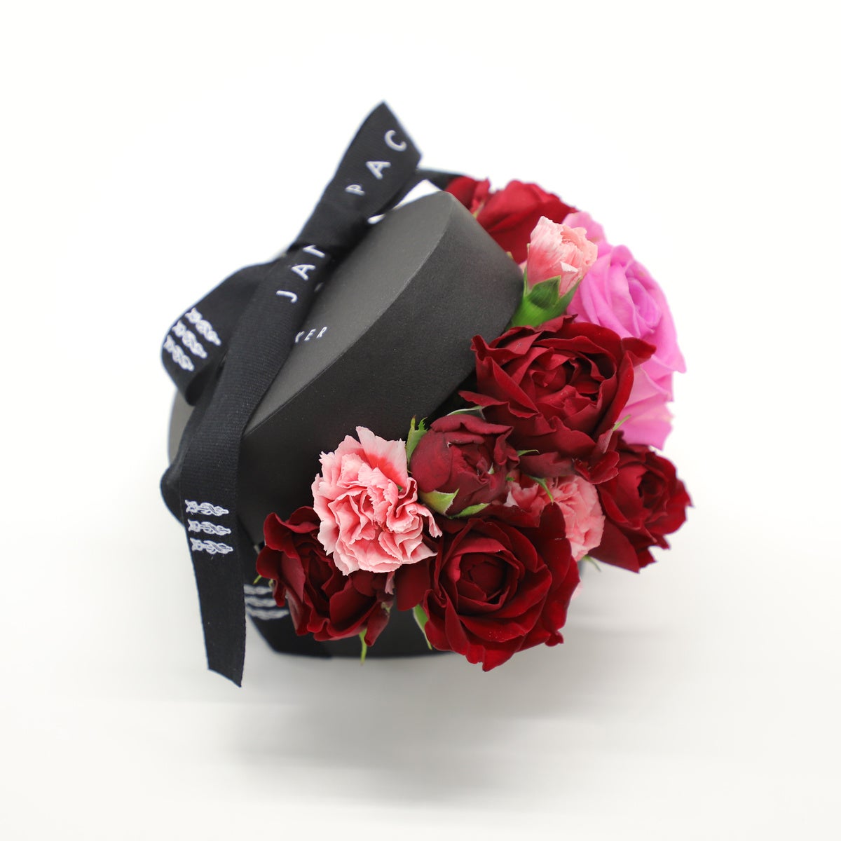 斬新かつ革新的なデザインで人気を博しているフラワーブランドJane Packerとのオリジナルフラワーアレンジメントです。 花はカーネーション、バラを使用しています。箱はハート型をしており、感謝の気持ちを伝えるのにぴったりなデザインです。