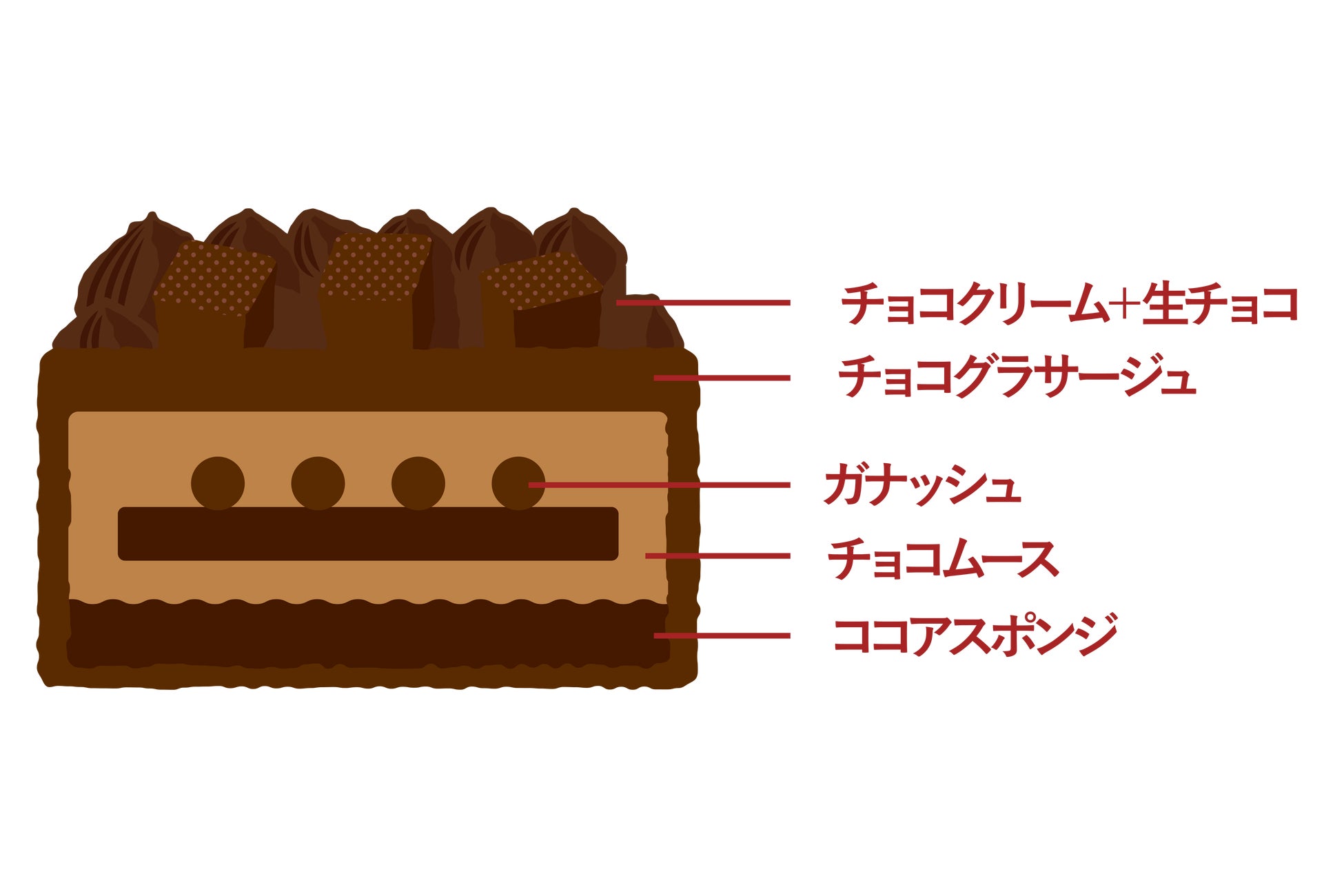 チョコクリームを重ねチョコのグラサージュでコーティングした、チョコづくしな味わいの