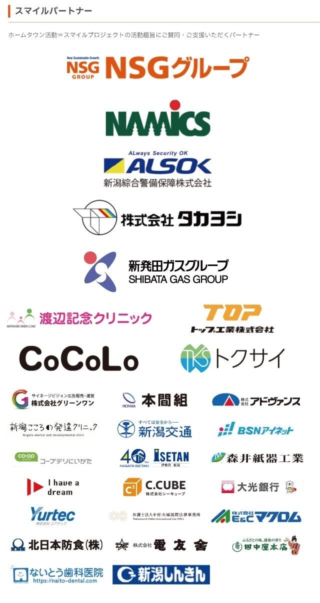 アルビレックス新潟では、たくさんの笑顔に貢献するアクションとして、ホームタウン活動を「スマイルプロジェクト」と定義し、笑顔溢れる街づくりに取り組んでまいります。