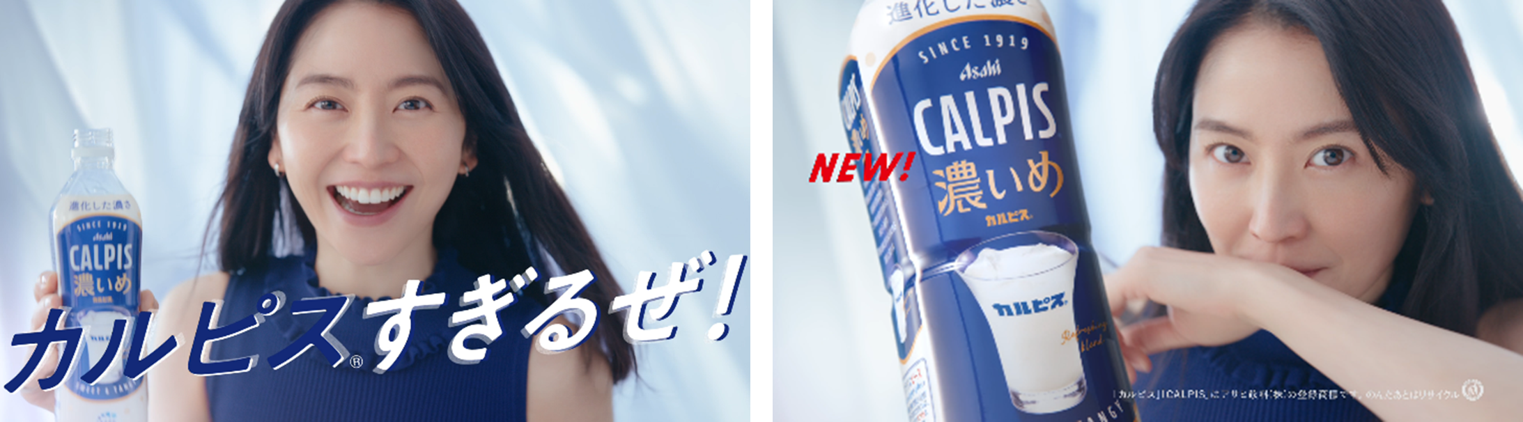 20年以上にわたって長澤さんを「カルピス」ブランドのTVCMに起用しており、これまでの出演映像とともに新商品『CALPIS濃いめ』を紹介するCMです。長澤さんが「カルピスすぎるぜ!」と宣言するシーンを通じて、商品の特長である“濃さ”と「カルピス」の新たな魅力を訴求します。
