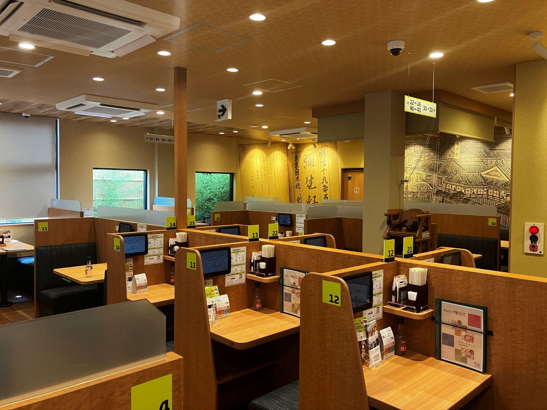 当店舗は2023年12月に公開しました新ロゴ・シンボルマークなど新しいブランドイメージを表現した店舗となっております。新ロゴ看板、モダンな“和”をイメージさせる暖簾(のれん)や「やよい軒」の名前のルーツでもある“彌生軒(やよい軒)”の歴史的資料をモチーフとした壁紙など、新ブランドステートメントを表現する“上質な”イメージでデザインされた店舗です。また、新しい取り組みとして、ゆっくりとメニューを選んでいただけるようテーブルに設置したタブレット端末からのオーダーや店舗限定デザートメニューの導入、さらにドリンクバーを設置することでくつろぎの時間を過ごしていただけるようにしました。 もちろん、“ごはん”や“だし”、“漬け物”のおかわり自由が楽しめる『おかわり処』もございます。