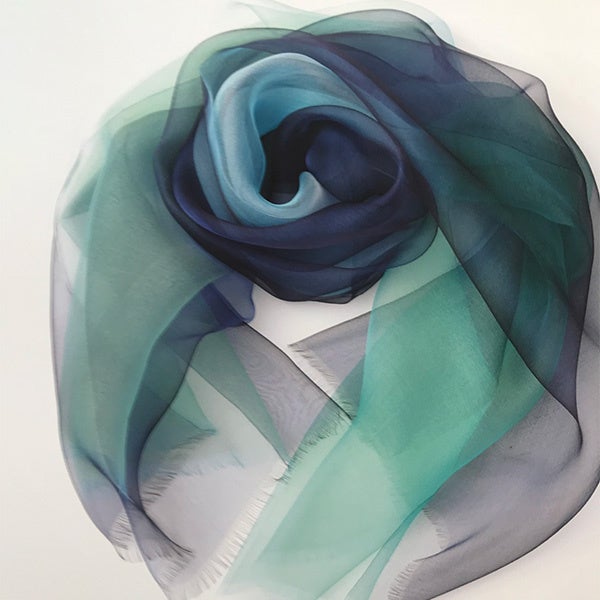 初夏の涼風のような清らかさは、生糸の段階から染めることで生まれる透明感によるものです。
