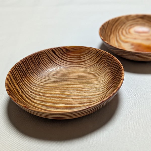 樹齢300年を超える黒松の中心部分「肥松」を使った食器で、使うほどに艶と味わいが増すのが魅力です。