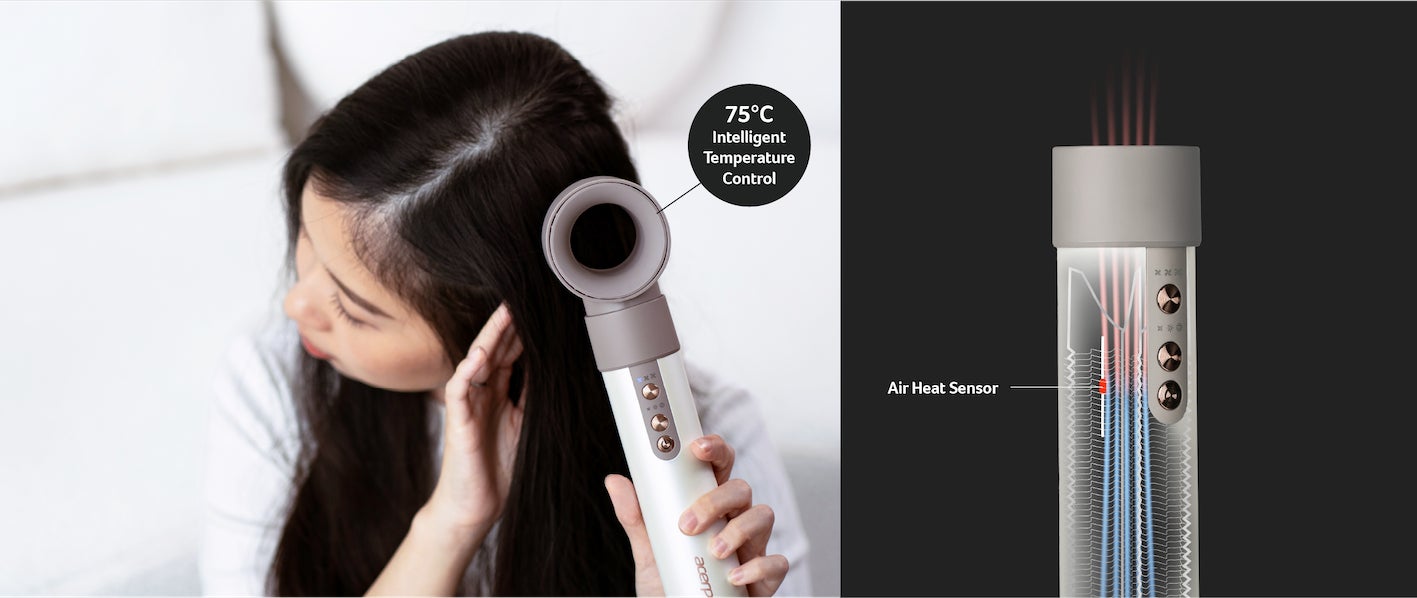 1 秒間に1,000 回、周囲の温度を検知。エアーヒートセンサーが75℃適正温度に熱をコントロールし、髪と頭皮を守ります。