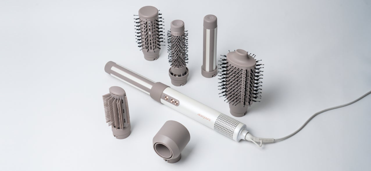 7 種類のアタッチメントが付属し、1 台あればドライもスタイリングもすべて完成します。従来の商品とは異なり、送風温度を調整し過度な熱ダメージから髪を守ります。カールもストレートもこれひとつでOK なので忙しい朝の時短にも最適。風の力でヘアセットできるオートカール機能が付いています。