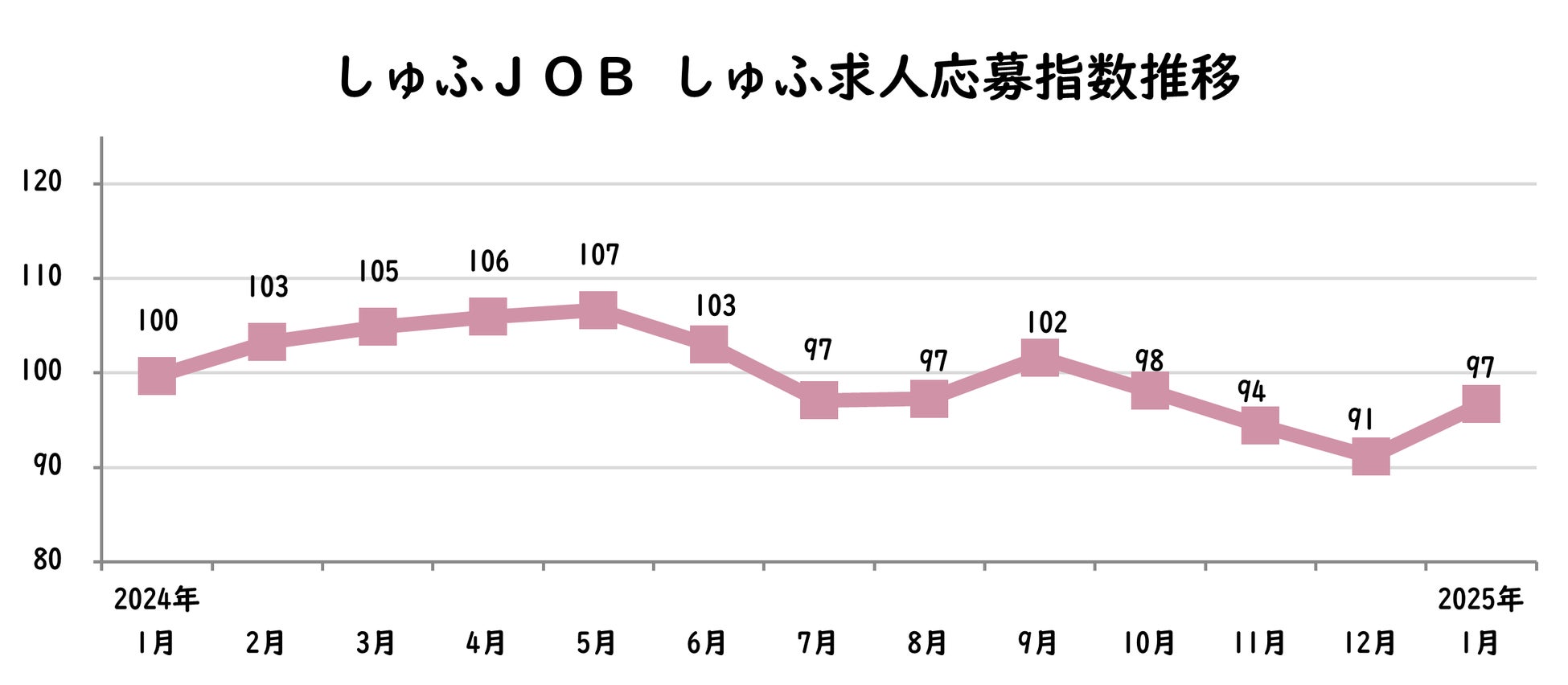 【しゅふの就職意欲調査 2025年1月】しゅふ求人の応募指数97/応募数、前月から1.5倍増