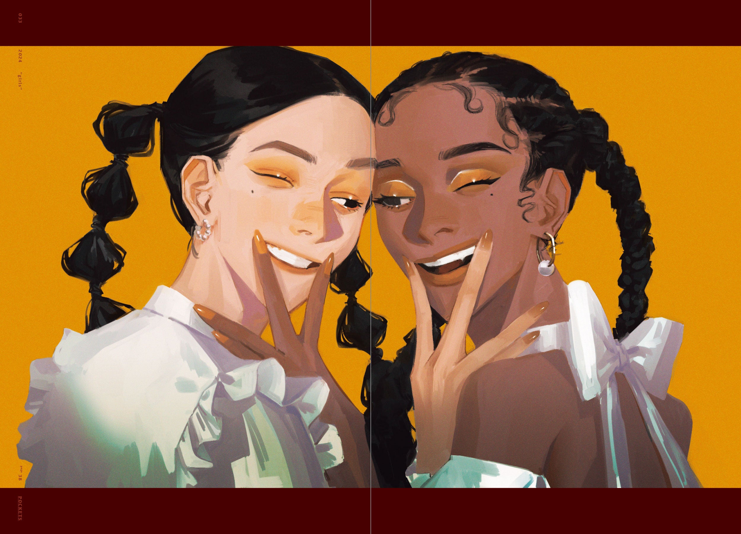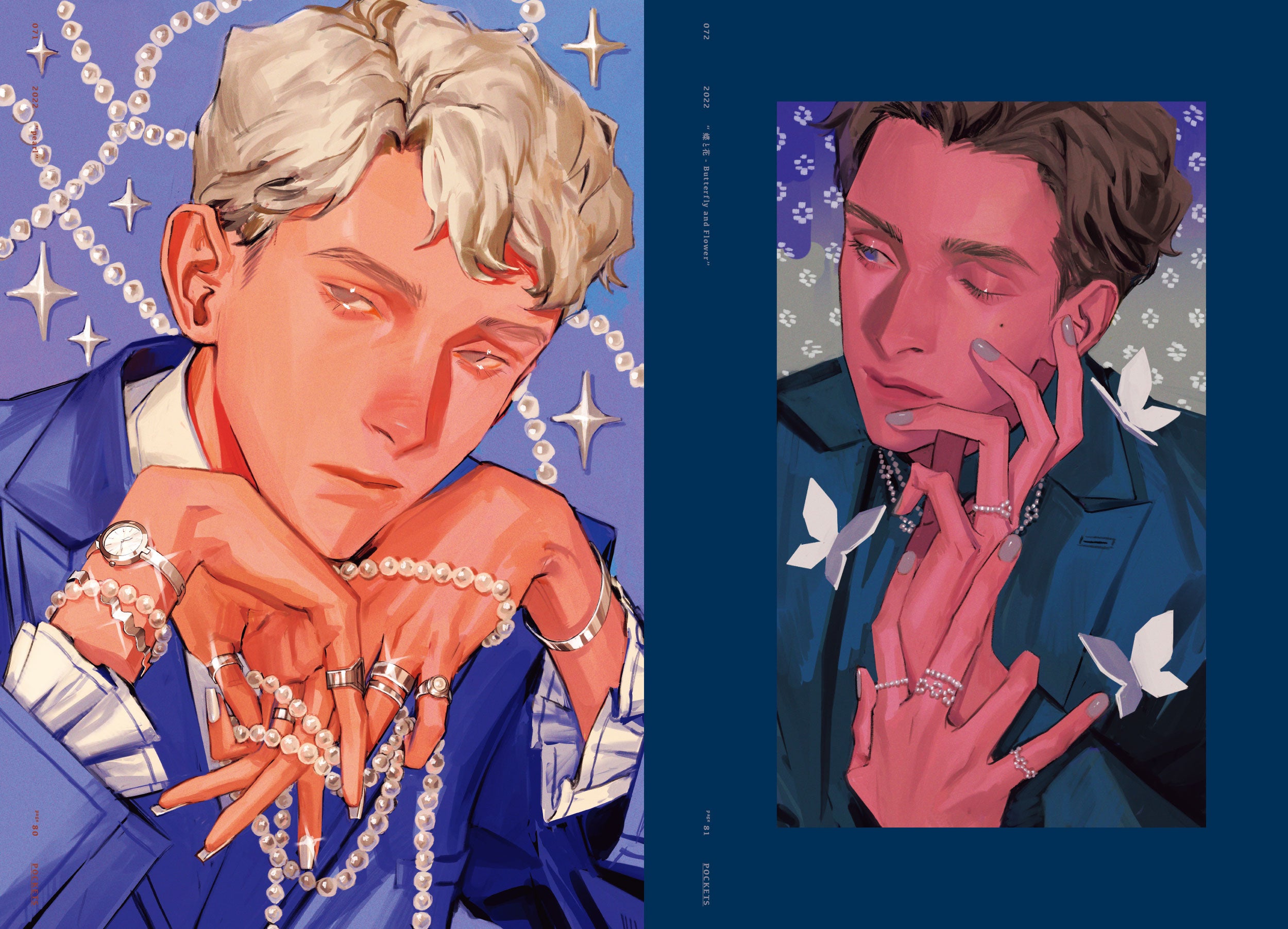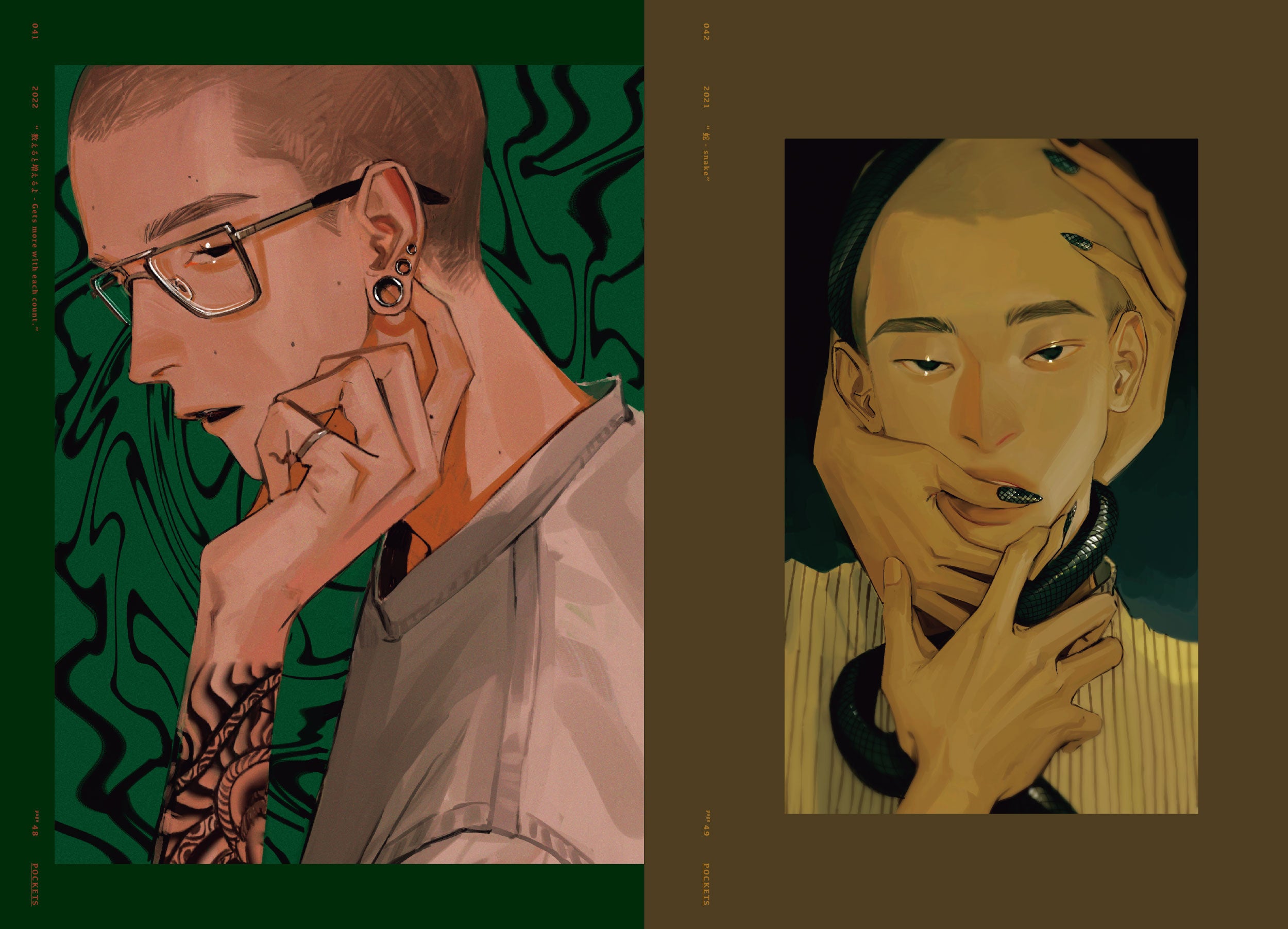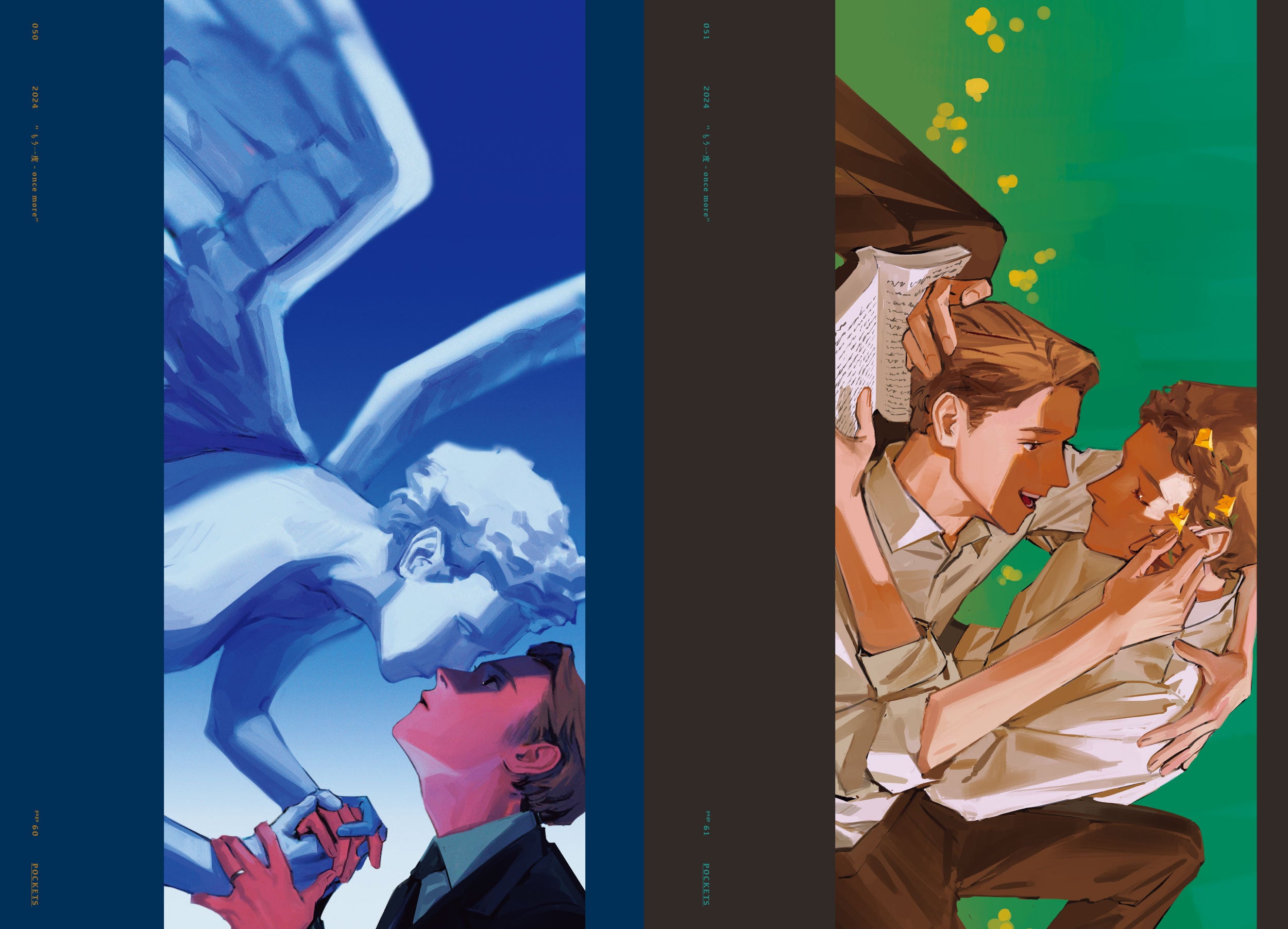 レインボーフラッグの6つの色をテーマに制作された連作「pride of ~ -rainbow series-」を始め、カラフルなカバーイラスト「POCKETS」ができるまでのメイキングも掲載しています。巻頭には折り込みポスター、巻末には映画をテーマにした連作「シネマティック・キャンバス」の小冊子付き。
