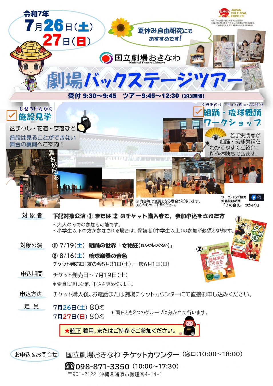 【国立劇場おきなわ】7月・8月自主公演/劇場バックステージツアーのご案内