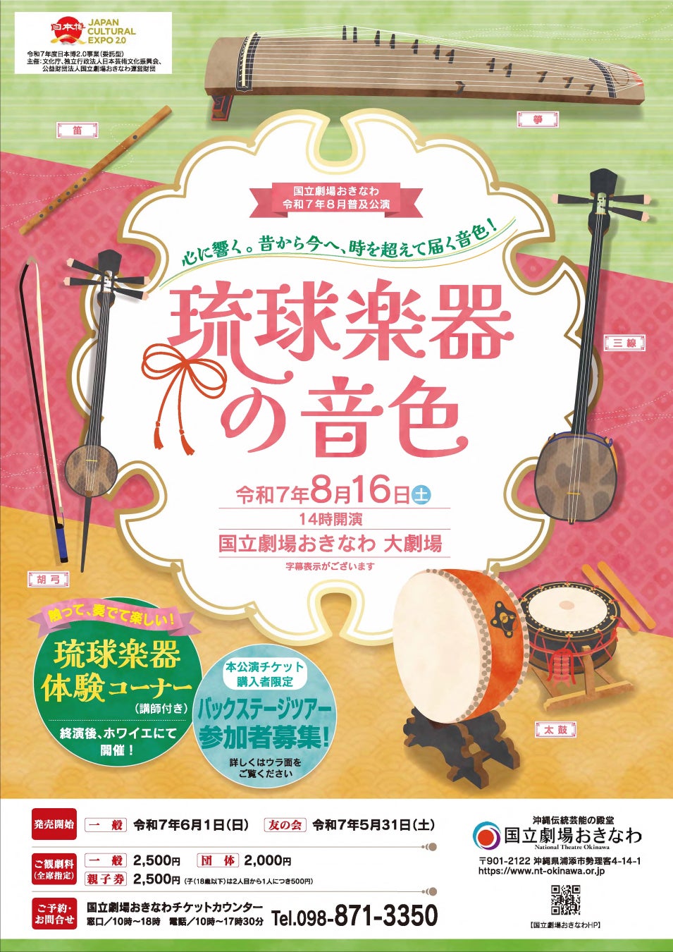 無料(ただし、7月19日(土)普及公演 組踊の世界「女物狂」か8月16日(土)普及公演 琉球楽器の音色のいずれかの公演チケットを購入していること)
