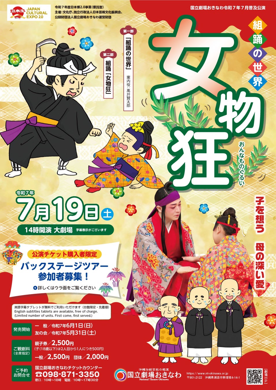7月19日(土)組踊の世界「女物狂」/8月16日(土)琉球楽器の音色/7月26日(土)、27日(日)劇場バックステージツアー