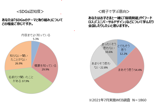 ※SDGsの認知度と親子での学びへの意向 (2021年7月実施、幼児の保護者1860人が回答)