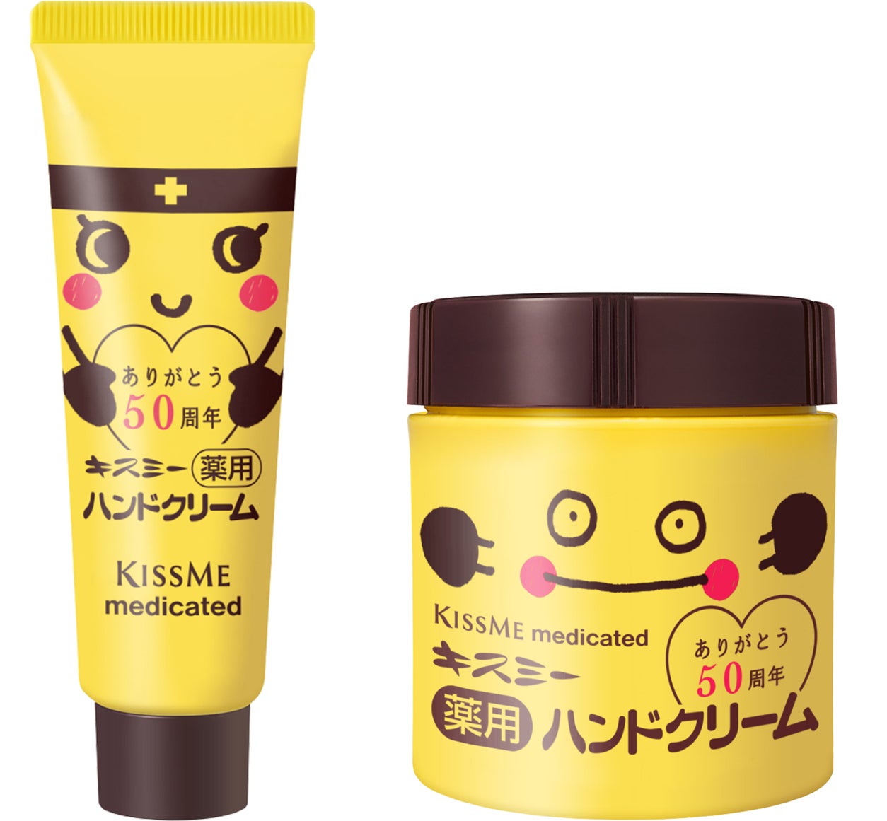 1975年の発売以来、多くの人に愛され続けているキスミー薬用シリーズのハンドクリームから、ブランドキャラクターのやっこちゃん&やっくんが描かれた50周年を記念した限定パッケージが登場!