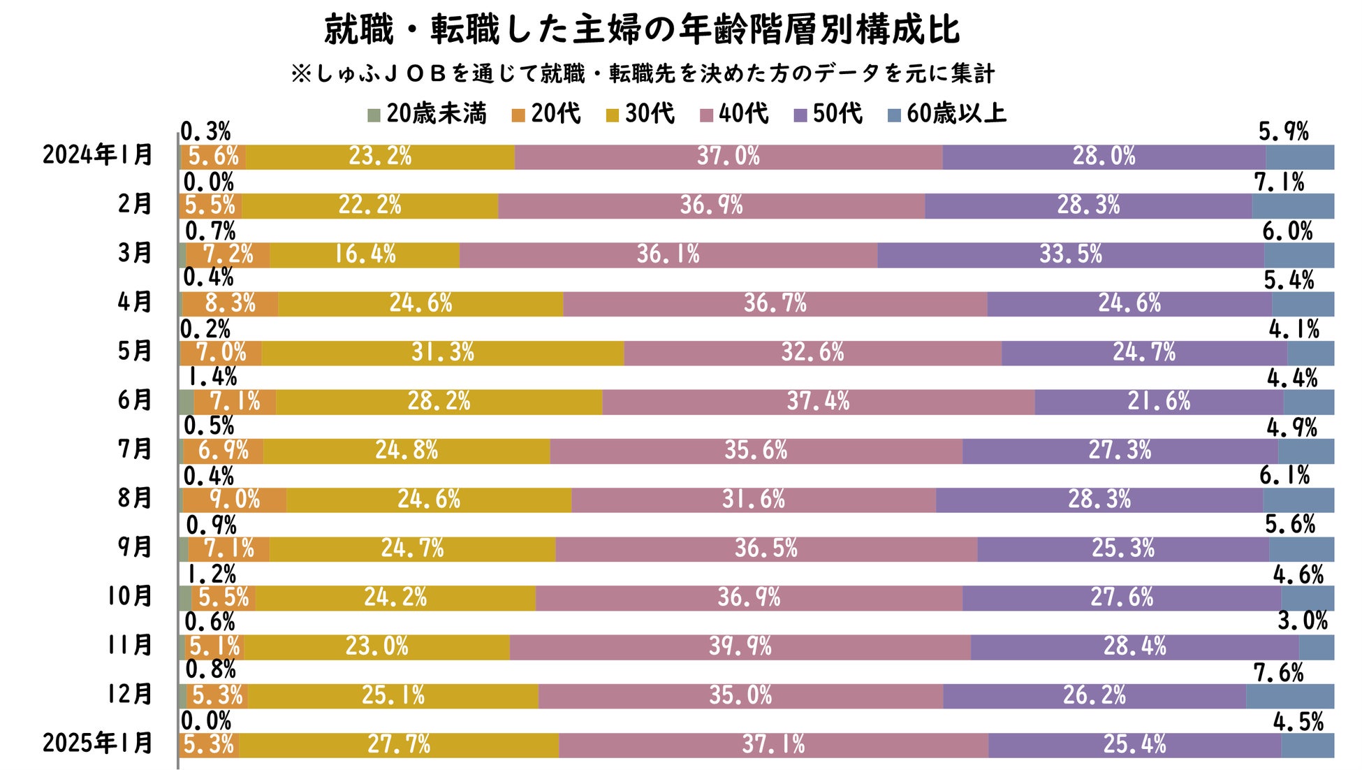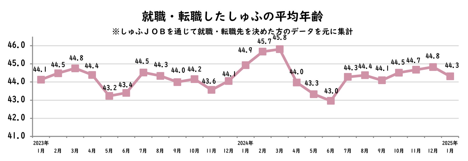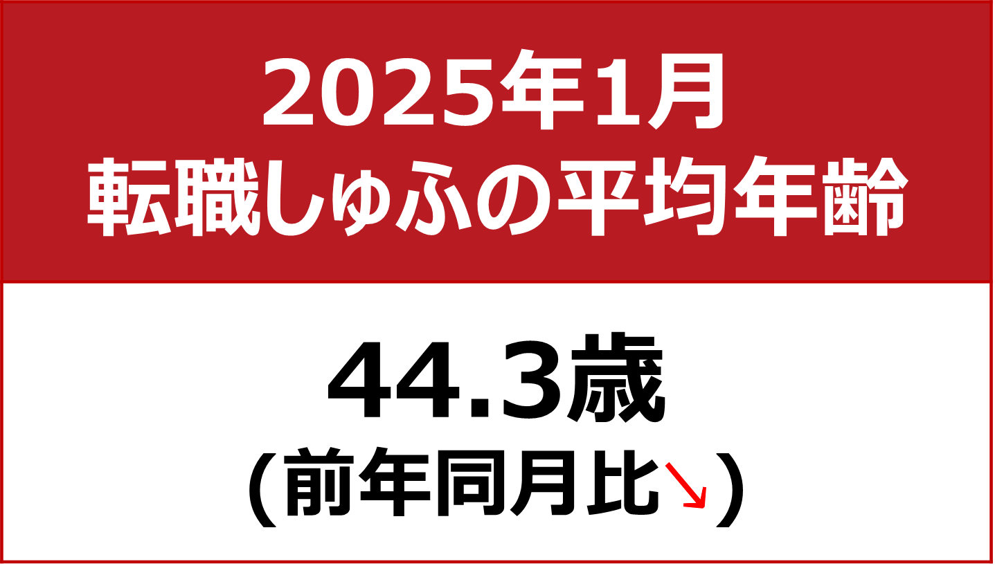 【転職しゅふの平均年齢調査 2025年1月】44.3歳(前年同月比-0.6歳)
