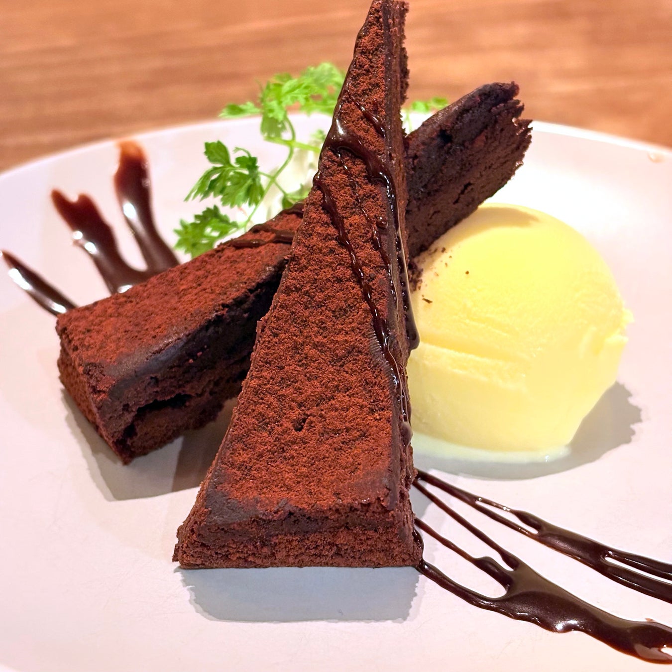 しっとり濃厚なガトーショコラに、なめらかなバニラアイスを添えた一皿。