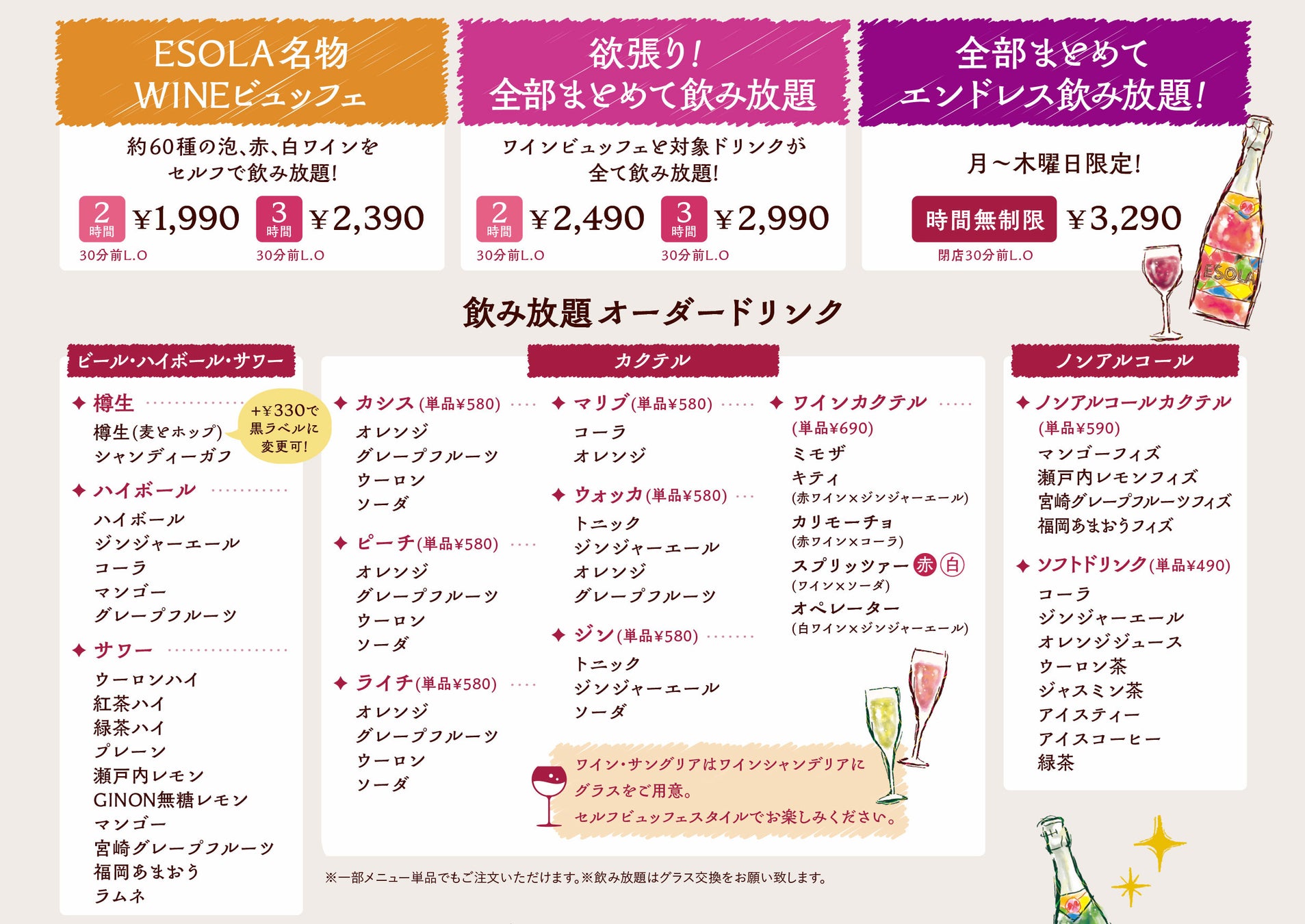 ワインビュッフェ「ESOLA」について