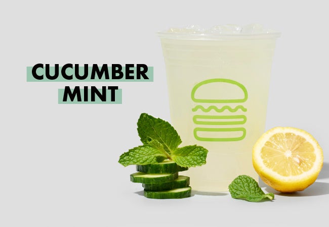 少し意外に感じられるキュウリを使用したレモネードですが、近年日本でもトレンドになっているノンアルコールカクテルや、フレーバーウォーターなどにはキュウリを入れるレシピが多く存在し、レモン、ミント、ベリーなどと一緒に漬け込み、香りを楽しむスタイルが一般的です。「キューカンバーミントレモネード」も、ミントの涼やかな香りとキュウリの瑞々しさが甘酸っぱいレモネードに溶け合い、飲むとすっきりとした後味が広がります。クセがなく清涼感のある味わいなので、シェイク シャックのバーガーやチーズフライなどの味のしっかりしたお食事との相性はぴったりです。