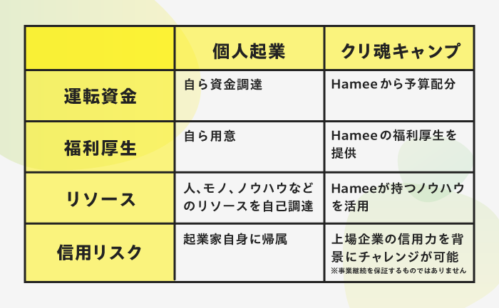 クリ魂キャンプに応募の上、採択された起業家には、以下の環境をご用意します。