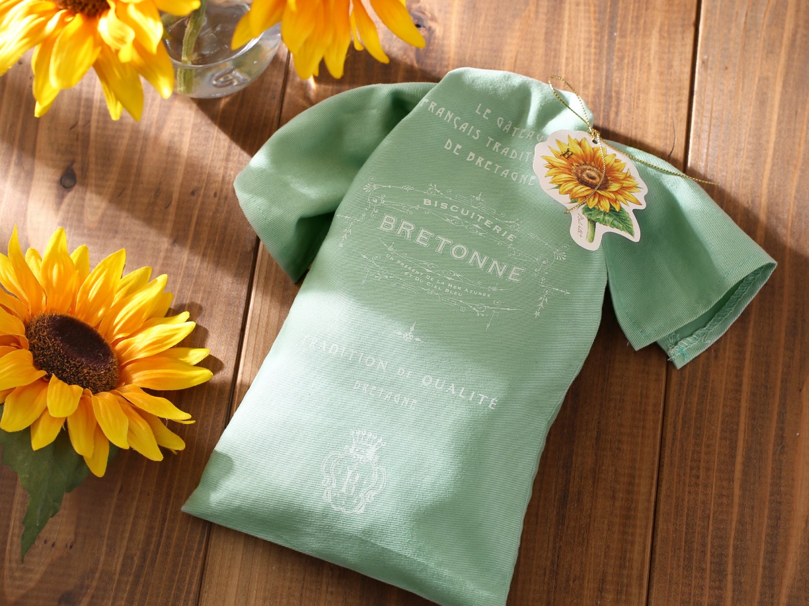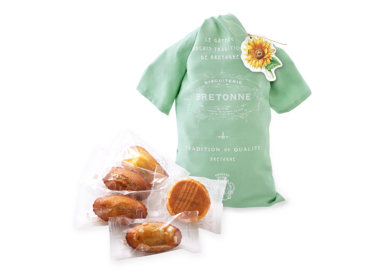 華やかなひまわりのイラストが描かれたパッケージに、バターの風味豊かな自慢の焼き菓子をアソートした、「夏のガトー BOX〈ひまわり〉」。焦がしバターがコク深いフィナンシェや、レモンとはちみつを合わせた季節限定のフィナンシェ〈シトロン・ミエル〉、発酵バターの風味豊かなガレット・ブルトンヌなど人気の美味しさを詰め合わせています。パッケージにはフランス語で「Je vous souhaite un bel été. 素敵な夏をお過ごしください」というメッセージが入っており、夏の贈り物や、父の日の贈り物としてもおすすめです。他にも、限定カラーのミントグリーンのたれ耳うさぎのようなコットンポーチに、自慢の焼き菓子4種を詰め合わせたセットもオンラインショップ・ぐるすぐり店限定で登場します。ブルトンヌの夏ギフトをぜひご利用ください。