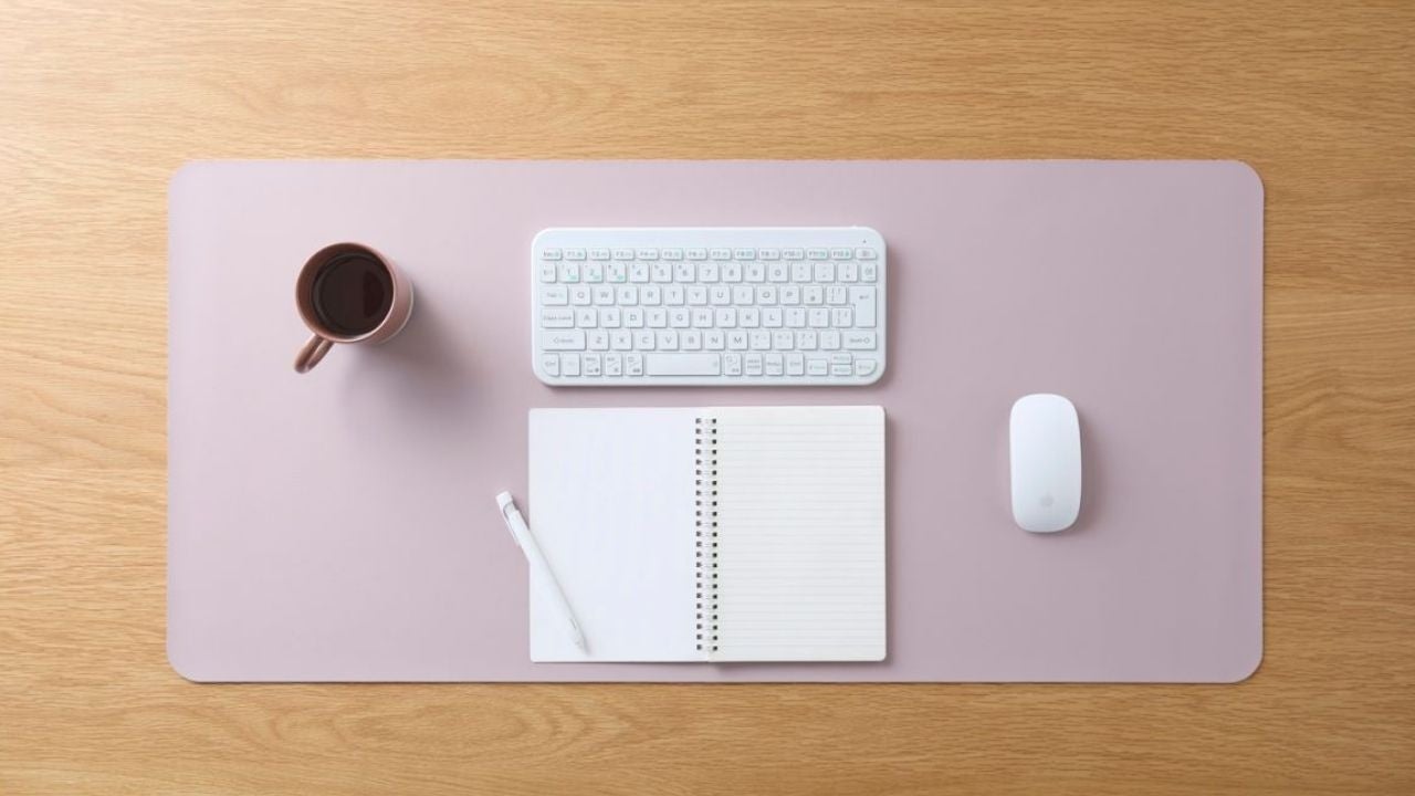 ■ノートパソコンやマウスはもちろん、キーボードやスマートフォン、手帳も余裕をもって置ける大きさのデスクマットです。