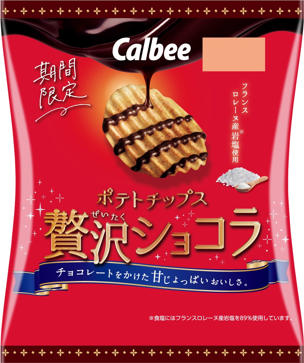 カルビー株式会社(本社:東京都千代田区、代表取締役社長:伊藤 秀二)は、甘じょっぱいちょっと贅沢なおいしさが楽しめる新商品『ポテトチップス 贅沢ショコラ』を、2022年10月31日(月)から全国で期間限定発売します。※コンビニエンスストアでの取扱いはありません。2023年2月中旬終売予定。