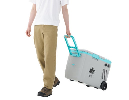 また、持ち運びに便利なホイール付きで移動も簡単なうえ、お掃除後の排水に便利な水抜き栓や、暗い場所でも中身が見やすい庫内ライトが付いているので、アウトドアシーンで気軽にお使いいただけます。そのほか、別売りの強力保冷剤「氷点下パック(R)」を、本アイテムに入れて保冷しておけば、移動中も凍結状態を長く維持することができます。