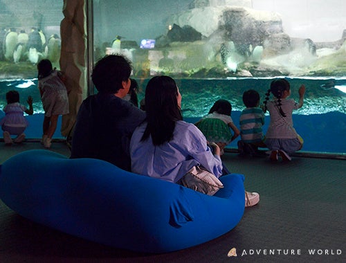 PANDA LOVE がジャイアントパンダたちとの思い出を振り返るMUSEUMとなって再スタート。また海獣館ペンギンエリアの2階には、リクライニングチェアを配した落ち着いた空間が登場。優しい音に包まれながら、夜のパークで感性をととのえる“ひとやすみ”のひとときをお楽しみください。