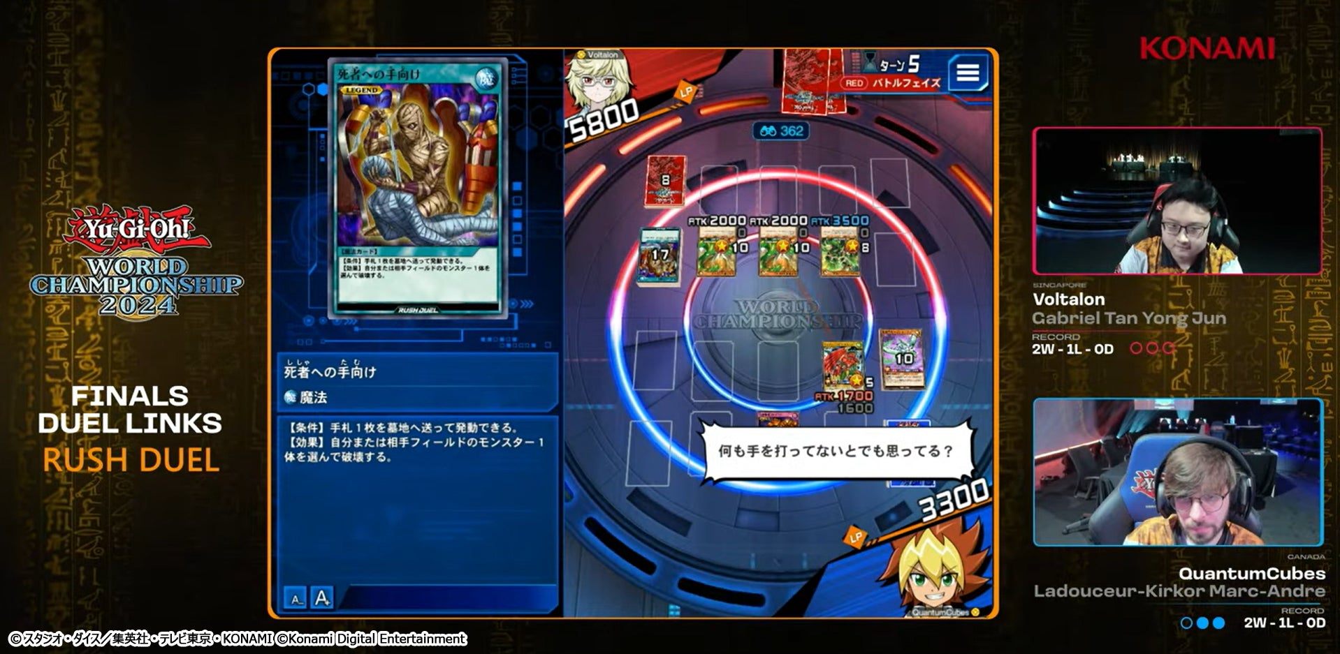 「WCS2024」では、世界各国・地域の予選を勝ち上がってきた総勢88名の選手による熱戦が9月7日(土)~8日(日)の2日間にわたり繰り広げられ、4部門から計12名の決勝進出者・チームを選出。決勝は「デュエルリンクスの部」からスタートし、今回から新たに追加された「ラッシュデュエル」ルールではQuantumCubes選手(Canada)が優勝し、初代チャンピオンとなりました。「スピードデュエル」ルールではShelmy選手(Bolivia)が見事優勝。前回から競技タイトルとなった3人1組のチーム戦「マスターデュエルの部」においてはRyan選手率いるTeam 7チームが優勝を勝ち取り、ラストを飾った「オフィシャルカードゲームの部」においてはRuben Penaranda選手(United States)が優勝を決め、世界の頂点に立ちました。